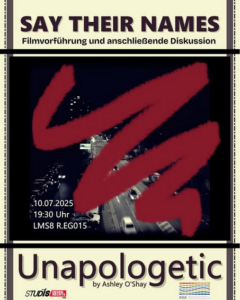 Wir wollen einen kleinen Teil dazu beitragen und zeigen deshalb in Kooperation mit dem Queerfeministischen Referat des ASTA CAU Kiel am 10.07.2025 ab 19:30 Uhr den Dokumentarfilm “Unapologetic” von Ashley O’Shay.